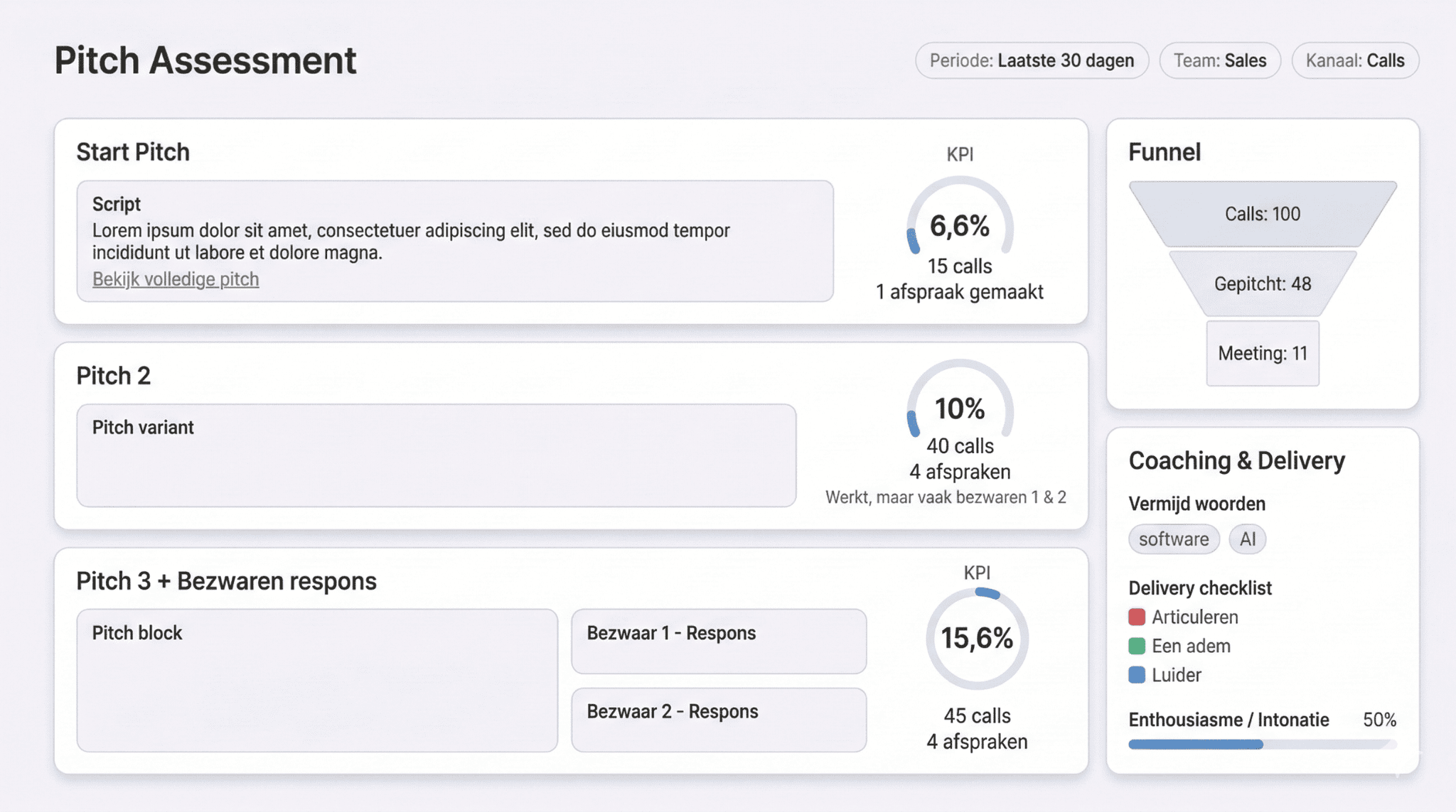 Het resultaat is geen rapport voor in de schuif, maar onderbouwde sales audit waarop u concrete beslissingen kunt nemen, gebaseerd op meer dan 100 cold calls.